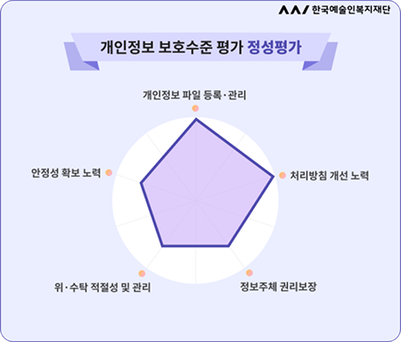 1) 재단은 정보주체의 개인정보를 안전하게 관리하기 위해 개인정보 보호법 제11조의2에 따라 매년 개인정보보호위원회에서 실시하는 “개인정보 보호수준 평가(2023, 개인정보 관리수준 진단)”을 받고 있습니다.